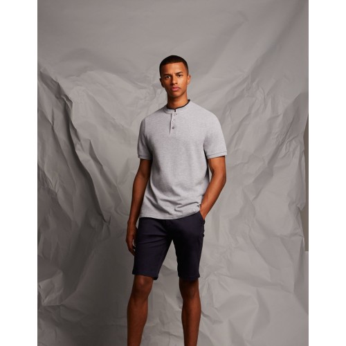 Ribbed Mandarin-style collar with contrasting piping